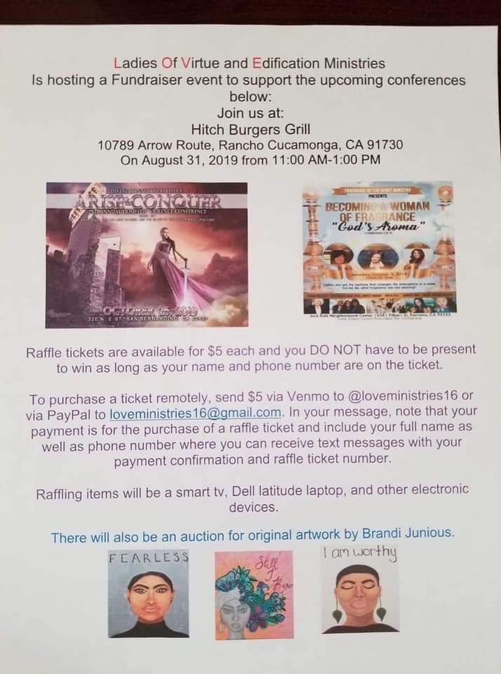 As a Ministry we are proud of our accomplishments for 2019 and want to share them with you. We post a daily word on Facebook for all to be encouraged, uplifted, and edified so that that the kingdom of God may be increased and Jesus Christ be glorified. We are partnered with WorldVision International and currently sponsor 7 children all over the world by providing financial support. We are partnered with Divine Connections H.O.P.E Ministry, which is a ministry that supports women who are in or have escaped Domestic Violence. We held a fundraiser which financially supported and we attended the “Arise and Conquer” 2nd Annual Domestic Violence conference. We held a fundraiser and financially supported Fragrance of the Spirit God’s Aroma Ministry at the “Becoming A Woman of Fragrance Conference 2019.” We have taught weekly Bible Studies with the Upland Rehabilitation and Care Center which is a medical facility that houses and provides medical care to the elderly and infirmed. We have provided financial support and attended the “Release the Sound Gathering” Conference which supported and honored women who have survived traumatic events in their lives. We have provided financial support and attended the “Pink Wings Experience” conference. They bring awareness to and educate women about breast cancer. They also provide support and resources to breast cancer survivors. We provided financial support to My Sista’s Table Ministry which provides food and clothing to the homeless in San Bernardino County and were able to feed and clothe over 200 people. We provided financial support and attend a fundraiser with the California Department of Corrections Special Agents and the Special Olympics to raise money for the Special Olympics athletes. We provided financial support to Davis Holt Jr. Ministries in feeding over 500 families during their Thanksgiving dinner giveaway. We provided financial support to Consuming Fire Ministries International in providing a Thanksgiving meal to over 30 low income families in the community.