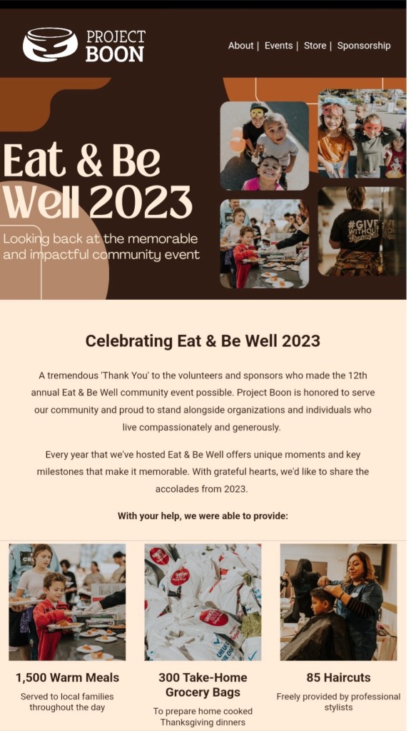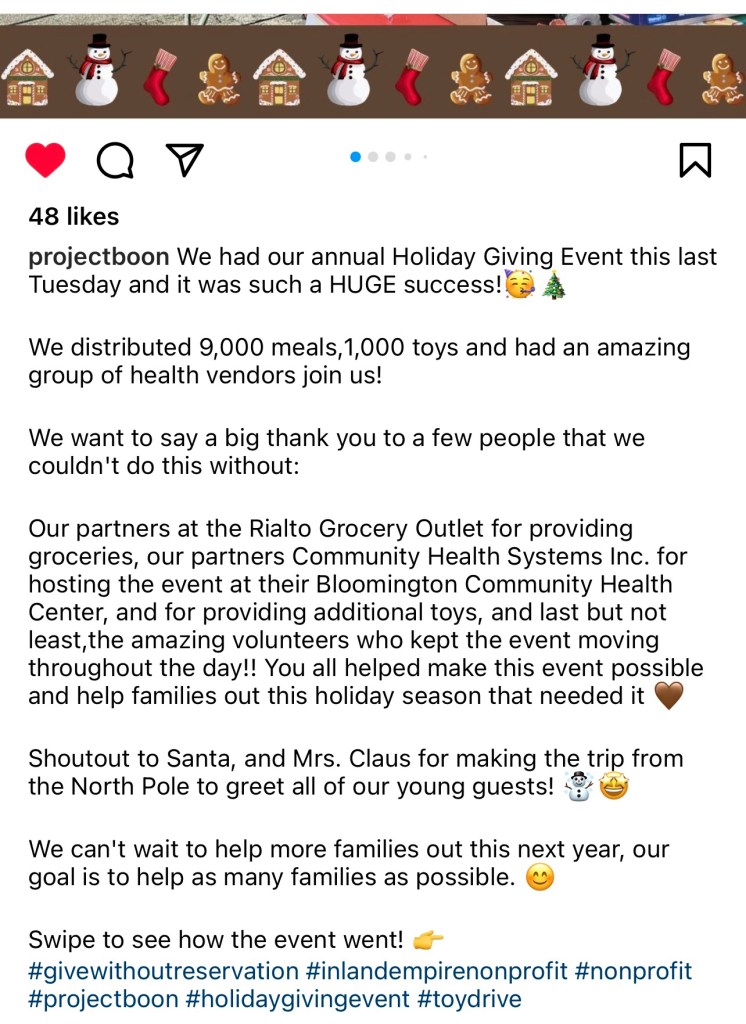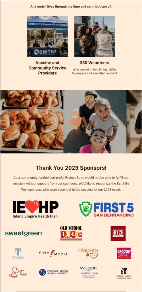 So blessed to be a blessing. We partnered with Project Boon once again in their Eat and Be Well event. This annual event supports the community here in the Inland Empire. There were over 1200 families served a hot Thanksgiving meal and 300 families were given bags of groceries.